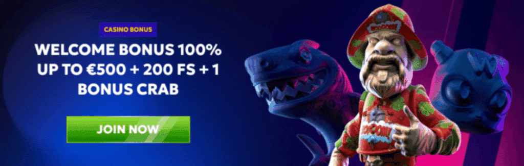 | ⚜️ Bónus de Casino | 100% até 500 € + 200 Rodadas Grátis + 1 Bónus Crab |