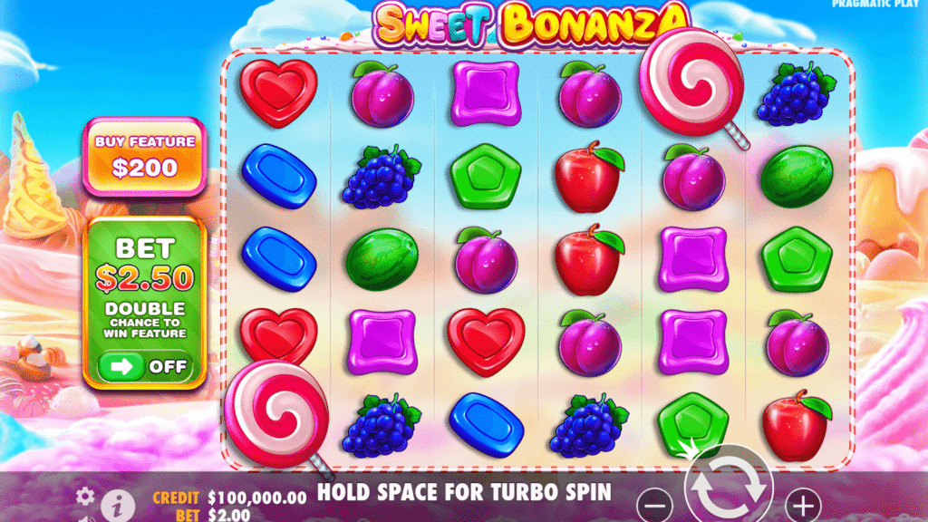 Ετοιμαστείτε για την πιο γλυκιά περιπέτεια της Pragmatic Play, τον κουλοχέρη Sweet Bonanza. Ένα παιχνίδι γεμάτο ζάχαρη, όπου τα φρούτα, τα γλειφιτζούρια, τα γλυκά και άλλα γλυκά αποτελούν μέρος του κουλοχέρη. Ένα παιχνίδι που θυμίζει τα καταστήματα που πωλούν γλυκά και λιχουδιές, αλλά εδώ τα γλυκά μετατρέπονται σε χρηματικά έπαθλα.